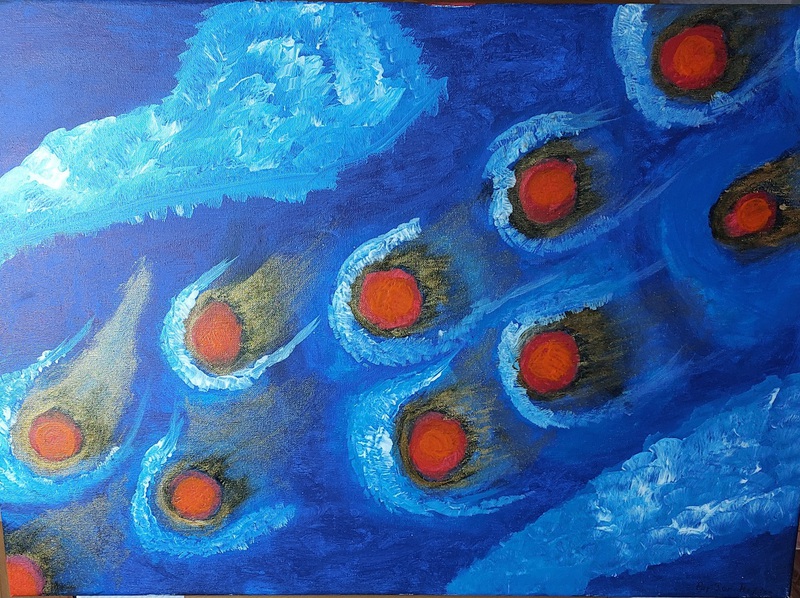 Original/Acrylfarbe/Orange,Blau ,Rot,Schwarz