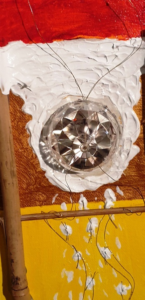 Acrylfarben auf Leinwand Modellierpaste. Bambus/Golddraht
