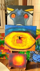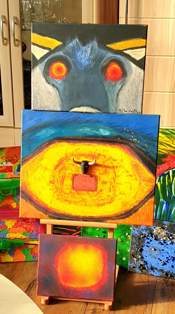 Original / Ölfarbe Orange,Blau hell+dunkel,Rot,Schwarz