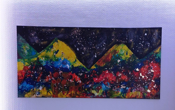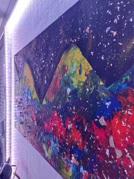 Acrylfarben und Glitzer auf Leinwand