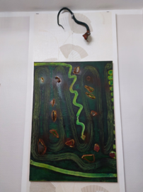 Original / Collage mit Bambus, Energiestein Band und Acrylfarbe auf Leinwand.