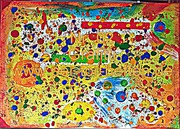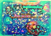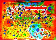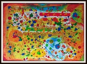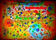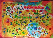 Acrylfarbe Grün,Rot,Gelb,Blau ,Braun auf Leinwand