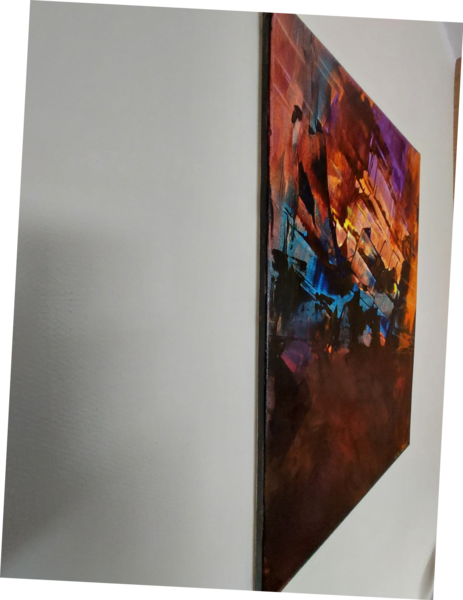 Acrylfarben Gelb, Blau, Rot, Orange, Violett auf Leinwand